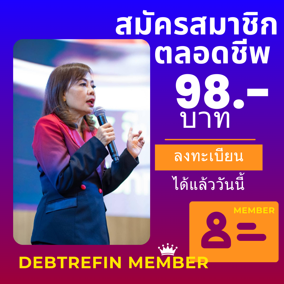 รับข้อเสนอก่อนใครๆ โดยการสมัครเป็นสมาชิก Debtrefin.com ได้แล้ววันนี้ ชำระเงิน สมัครสมาชิก เพียง 98.- บาท ได้ที่